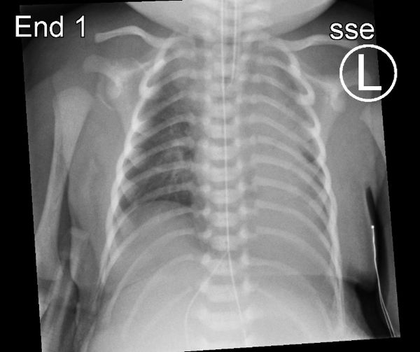 (Pic: chest x-ray demonstrating small lungs in a patient with a giant omphalocele)